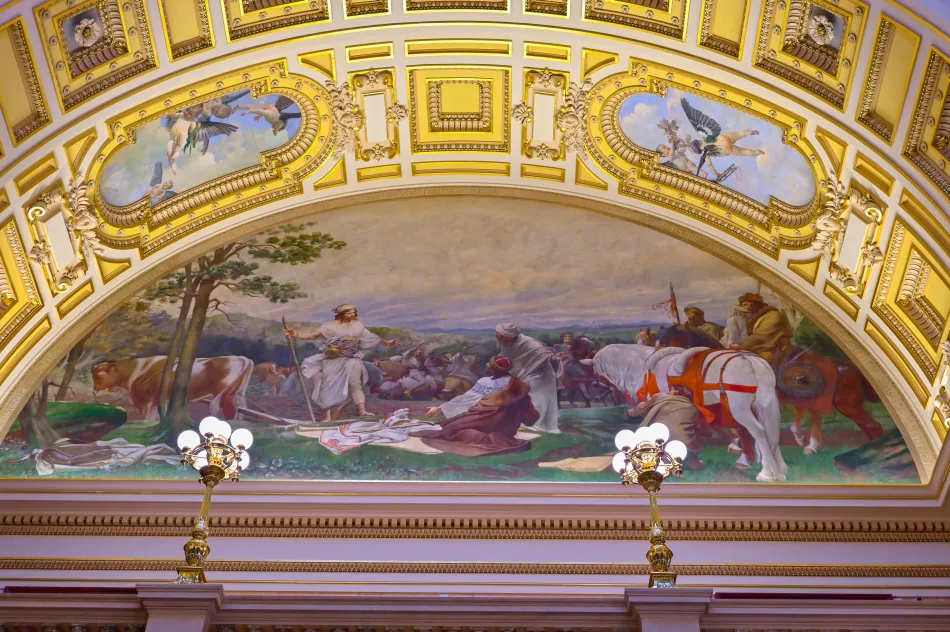 圓頂周遭的半圓形拱頂畫作也很值得細看,有些是捷克名人,也些則是象徵權力、科學、藝術等等,等等逛到高處的時候可以好好欣賞。