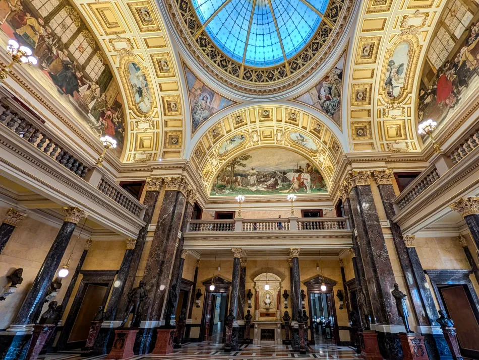 進到國家博物館的時候應該可以看到建築的圓頂,那圓頂下方就是先賢祠,圓頂周遭有不少繪畫,可以觀看導覽 APP 的介紹,順路參觀到上層後就可由高處拍這區域,不用心急覺得到底該怎樣上去。