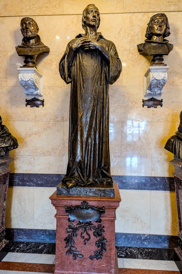裡面雖然有不少名人,對這區域歷史不熟悉的人應該認不太出來,雖然…雕像都會標註人名,其中一位應該很眼熟、感覺在舊城廣場有看過,那一位就是楊.胡斯。