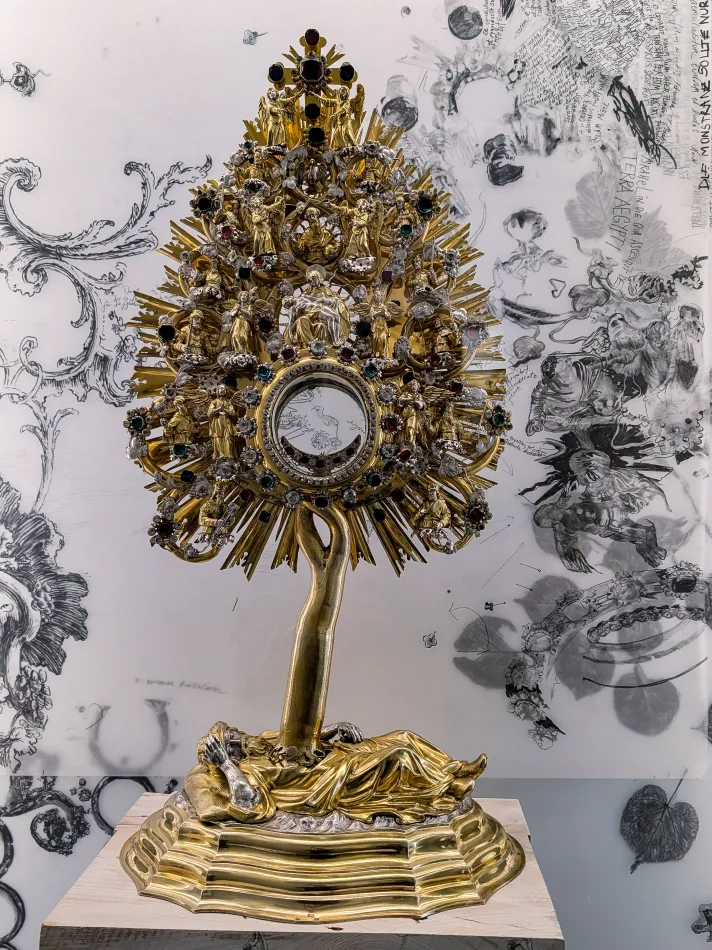 總之,祭壇畫的主角是被人用石頭砸死的聖史蒂芬,旁邊可以看到一位聖人身上插滿弓箭,那是聖塞巴斯蒂安(Saint Sebastian),大理石則是來自於波蘭、提洛(Tirol,現在奧地利的西邊)等地。