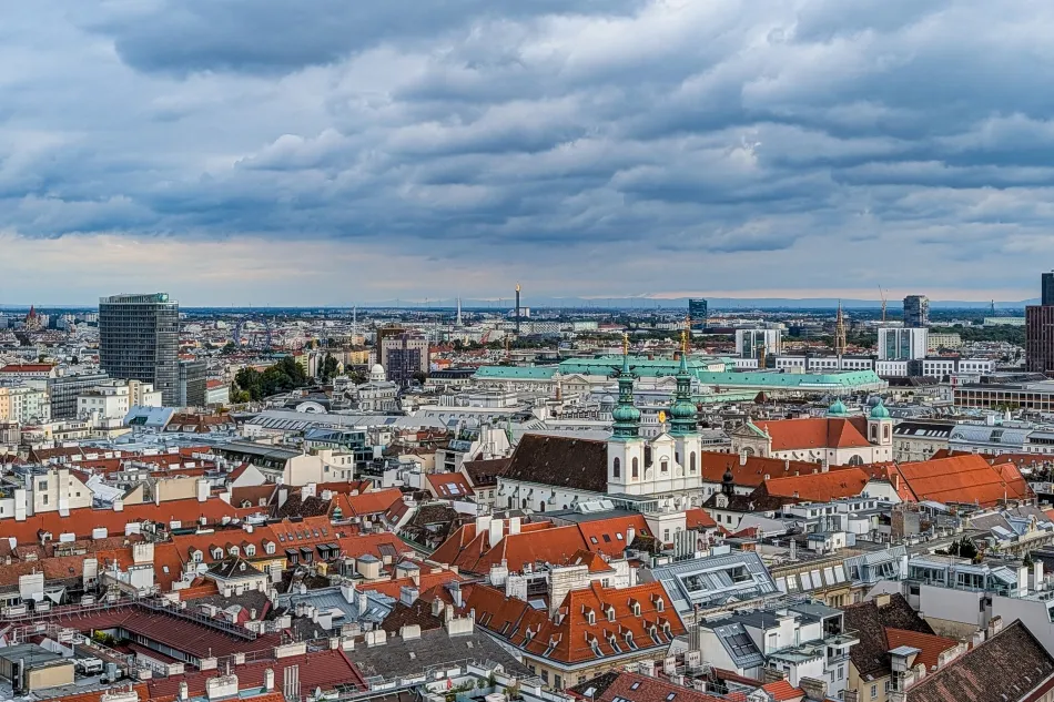 上到觀景台之後就是在內部繞繞、拍拍維也納的天際線,雖然處於室內但會打開窗戶,不會被玻璃干擾拍照,還蠻貼心的。這邊的視野非常好,對維也納略為熟悉的話應該可以認出維也納市政廳、沃蒂夫教堂、霍夫堡等等,最顯眼的建築則是格拉本大街尾端的維也納聖彼得教堂。