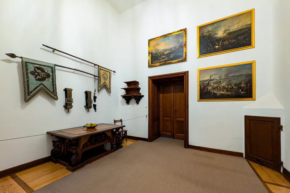 通過上述區域之後會來到一個角落的房間,房間本身沒啥好介紹的,就是陳列列支敦斯登國王參與某幾場的拿破崙戰役,牆面上的旗幟也是原物。通過這邊之後會經過某位公主的起居室,風格非常典雅,櫥櫃還有擺放麥森瓷器,當然…無法近看。