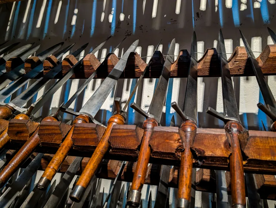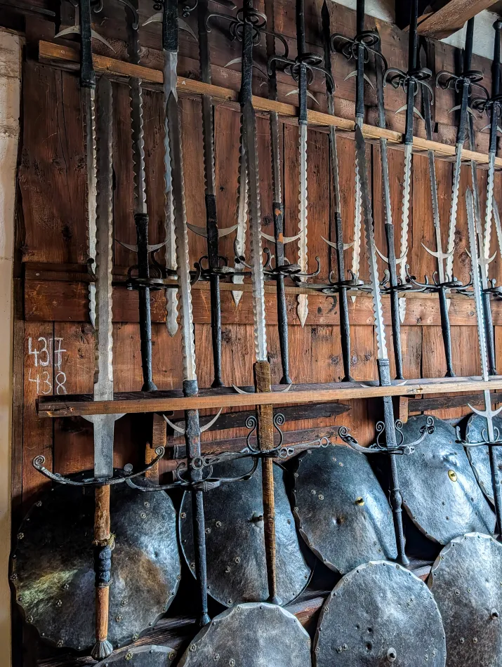 博物館的最上層(Level 4)是個蠻有趣的地方,展示了不少狼牙棒、戟、雙手劍之類的武器,狼牙棒的使用門檻很低、適合配發給民兵,而雙手劍不好使,擅長這種兵器的人可以享有比較優渥的薪資。