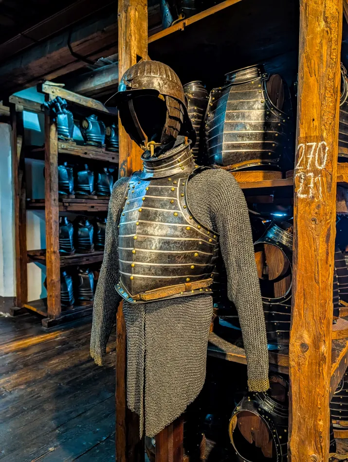 Level 2–3的文物以不同兵種的盔甲為主,,有些盔甲上的圖案非常繁複,那些可能是用來炫耀的,不會真的穿到戰場。相較於其他兵器博物館,這邊可以更靠近的欣賞盔甲細節,搭配導覽手冊的介紹就可以對當時的使用狀況有基本理解,但切勿碰觸展品。