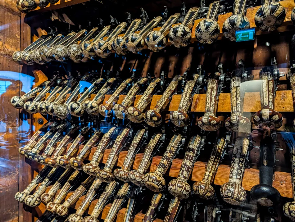 這邊的展示區域分為四層、藏品超過三萬件,主要是盔甲、槍械,搭配館方提供的英文小冊,還算有趣,可以知道當時軍事裝備的用途與轉變,也會簡單介紹武器貿易的狀況。此外,還有一些特別的展品屬於王室或貴族,小冊也會簡單說明其特色!