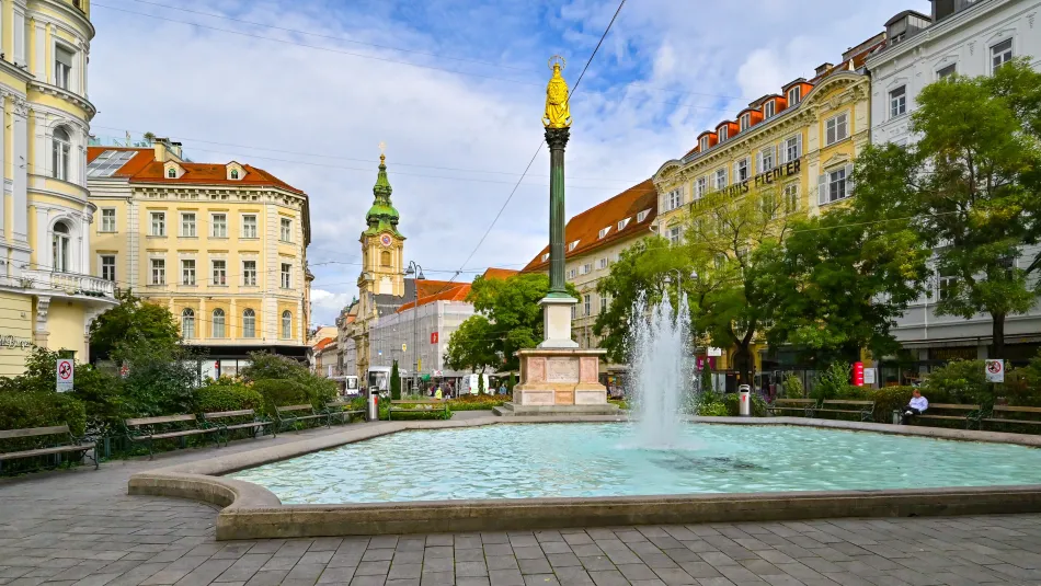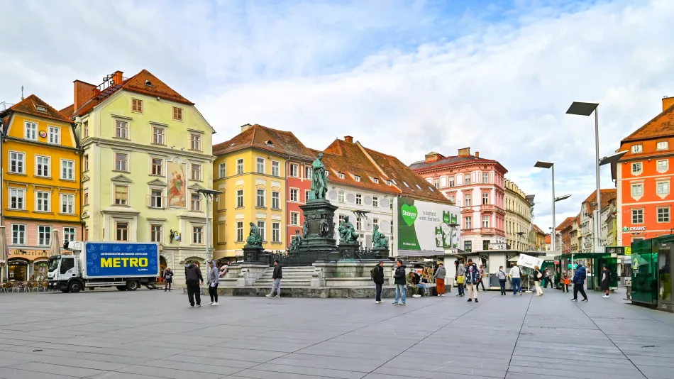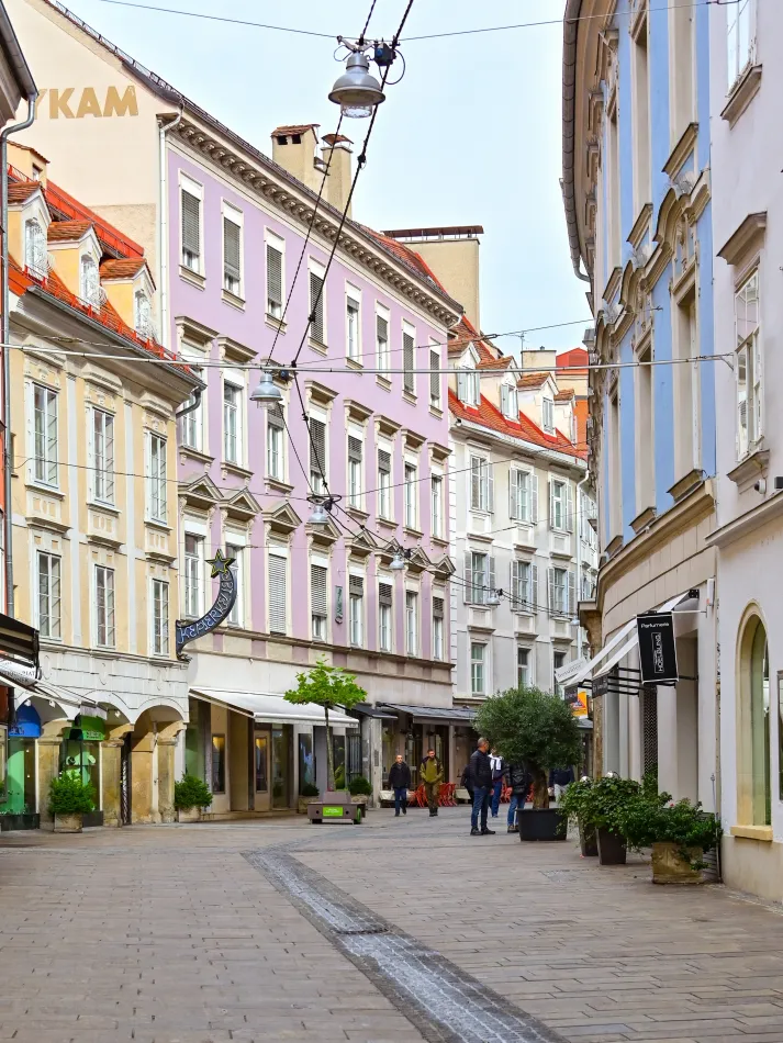 沿著 Herrengasse 走下去就會到瑪麗安紀念柱(Mariensäule),那算是這個散步之旅的盡頭,這條街是格拉茲的主要逛街大道,不妨花點時間於賣店晃晃。