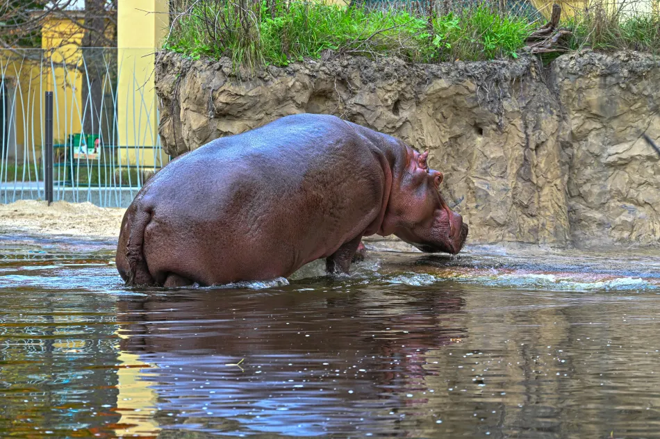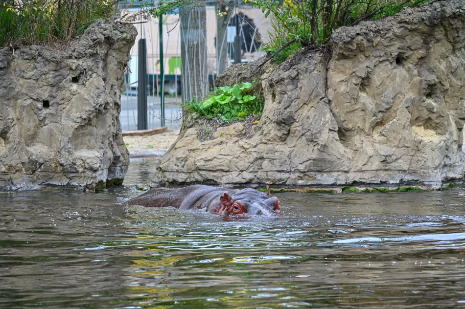 通常我到動物園都會去非洲動物區走走,熊布朗宮動物園也有類似的區域,然後…看到玩水的河馬突然跳出來、張起血盆大口,算是在動物園約2小時讓我印象最深刻的照片。
