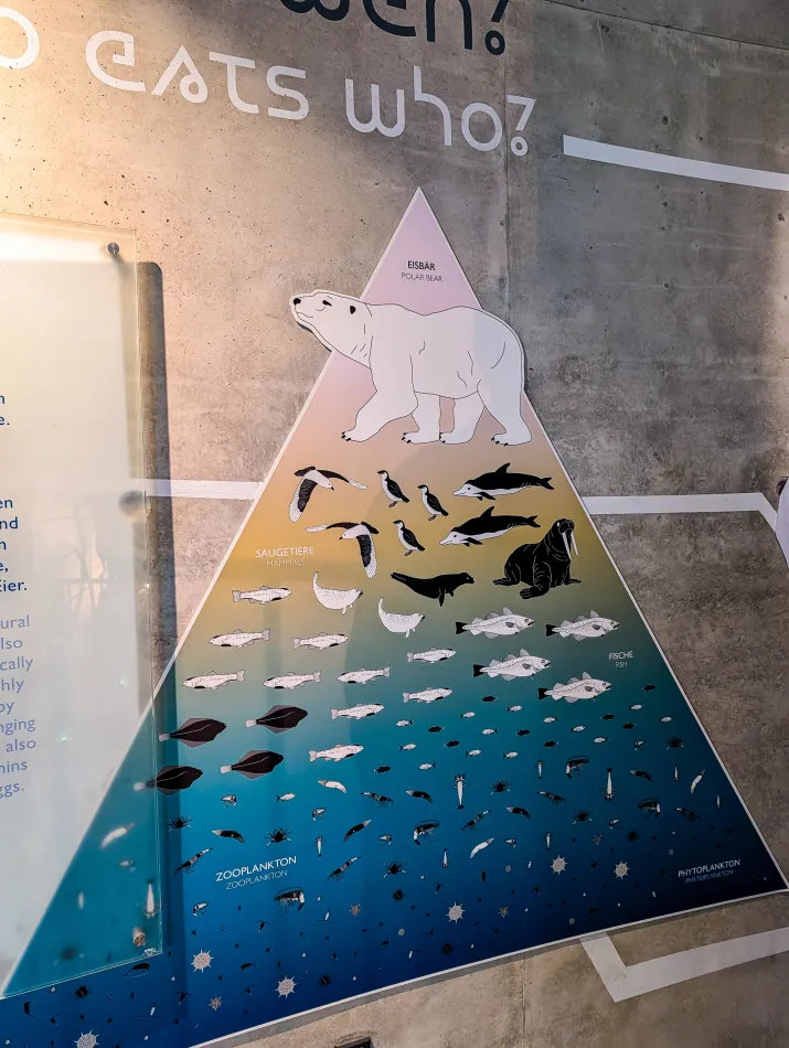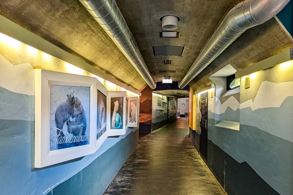 北極熊區域佔地頗大,應該有考慮到牠們所需的生活空間,也有介紹不少北極熊習性,因為看過一些紀錄片就沒認真看文字資料了,順著動線走就可以到這區域上層的觀景台欣賞北極熊的活動。