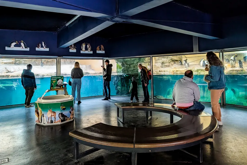 另一個我很喜歡的區域是…企鵝區,熊布朗宮動物園有兩種企鵝:跳岩企鵝(Rockhopper penguin)跟國王企鵝(King penguin),這個企鵝館的特別之處在於場地蠻大的,可以欣賞三不五時就下去玩水的企鵝,而且牠們真的非常吵。