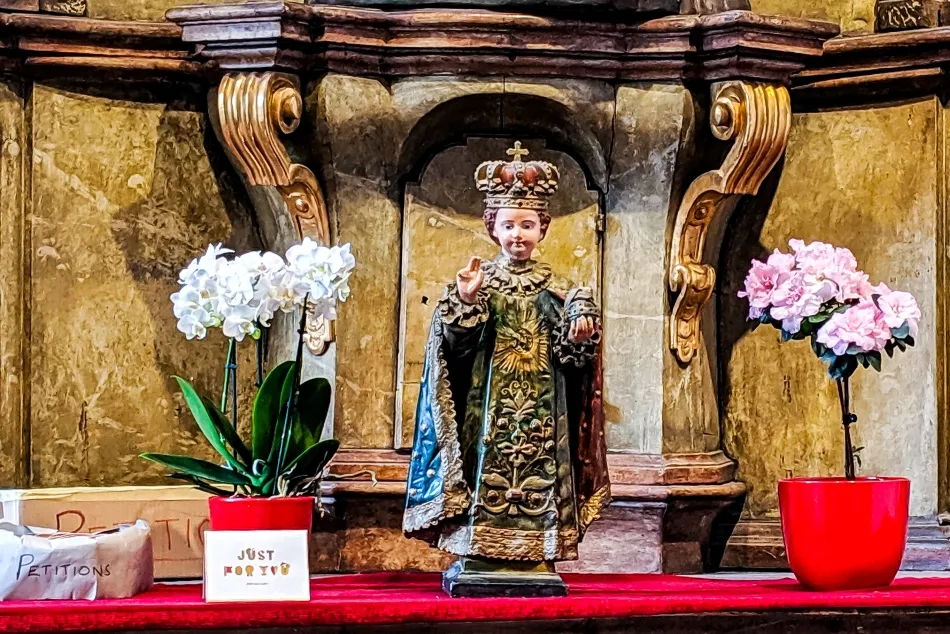 一開始的導覽是洛克維茲宮的簡史,包含重要的家族成員、以及被納粹迫害的歷史等等,有興趣的話可以好好查看告示牌說明,我只有大略看過,再加上…也記不住人名,就不詳細介紹了。除了一堆人物肖像,還可以看看知名的「嬰兒耶穌」,如前所述…這一尊是複製品,是由家族成員捐獻給教堂的!