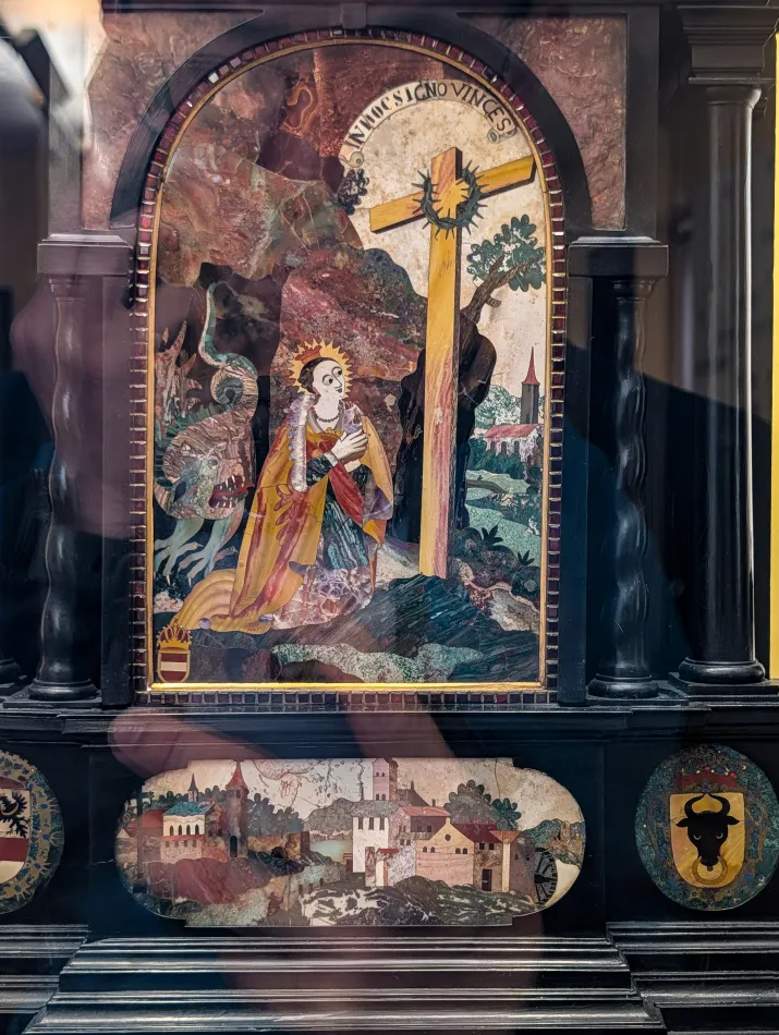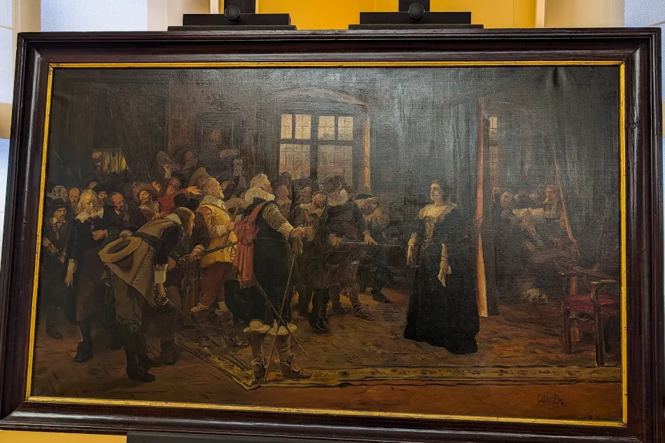 這區域還有陳列一幅有趣的繪畫,簡單來說…1618年於布拉格城堡的舊王宮發生第二次擲窗事件(三十年戰爭的導火線)的不久後,一些天主教高官逃到這邊尋求庇護,當時的女主人不僅庇護他們還出面對抗氣勢高漲的新教份子。