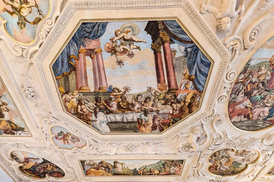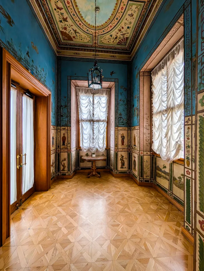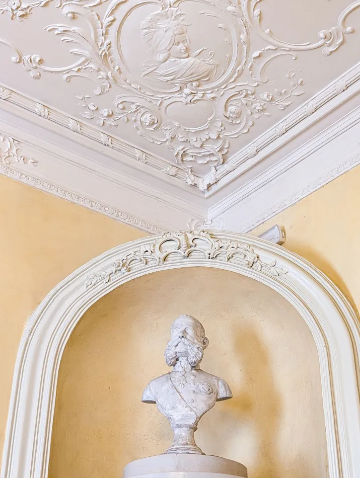 在陽台拍夠之後再順著動線走就能到最後一間展間,沿途會經過一間大廳,天花板的裝飾可以好好瞧瞧,最後一個區域有點像禮拜堂,同樣是巴洛克風格,拍完就可以離開了!