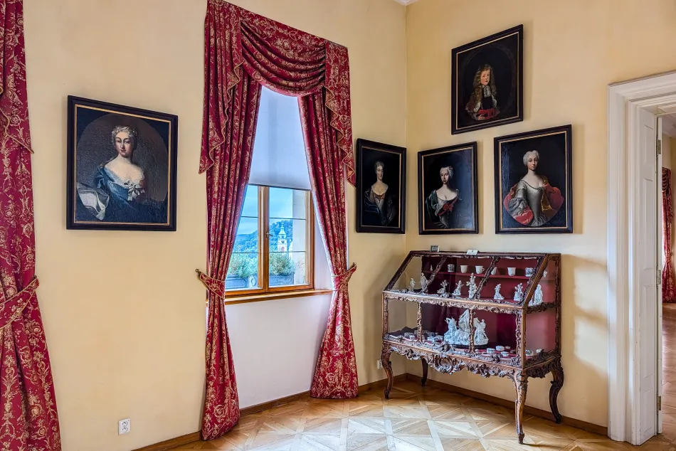 逛到這邊就算是接近參觀路線的尾聲了,後面還有一個寬敞的舞廳之類的區域,除了懸掛不少比較現代的人物肖像,還有一間偏向東方風格的小隔間,除了前面裝飾有點異國風情,那邊也是用來欣賞布拉格城區的地方,當然…禁止進入。