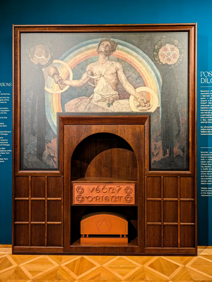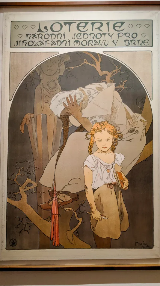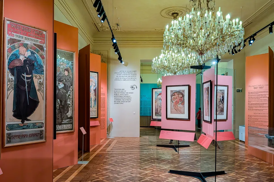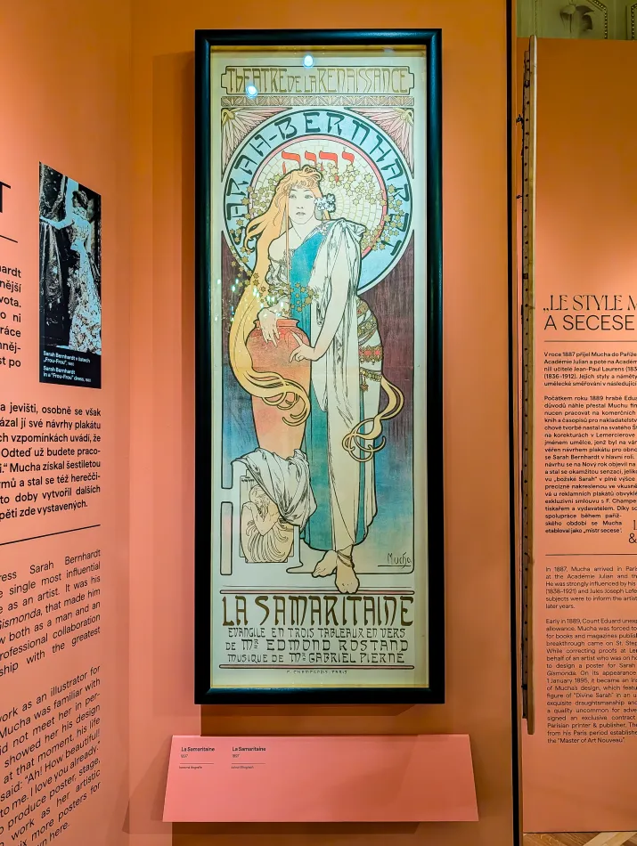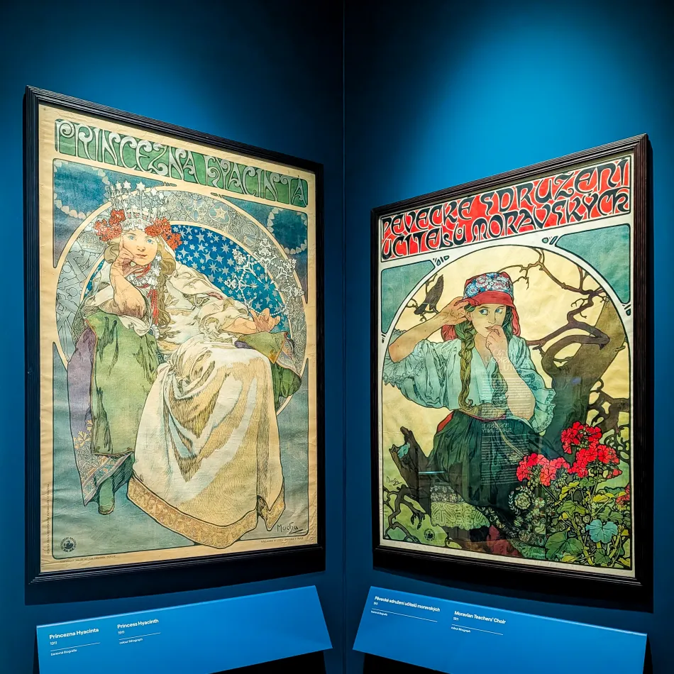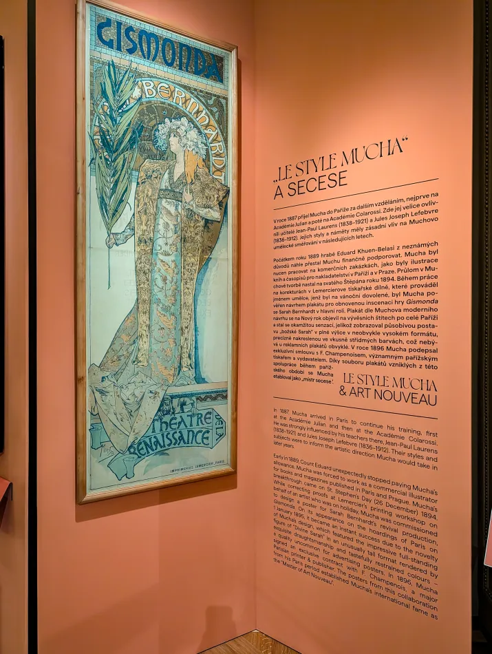 Mucha Foundation Art Museum 沒有提供導覽機但英文告示還蠻豐富的,購票後再循著動線到二樓參觀。因為博物館已經一分為二、散落在 Mucha Foundation Art Museum 與 Mucha Museum,完整度不如過去,參觀時間抓45–60分鐘就好。
