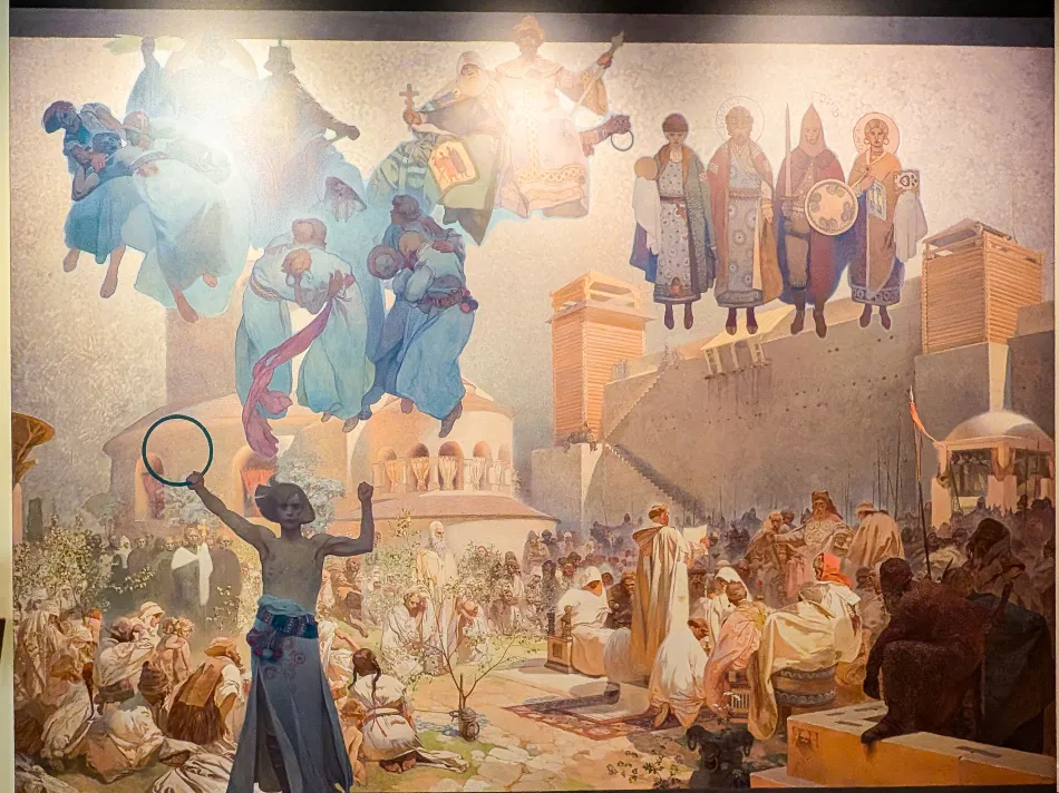 這個由20幅畫作組成的系列畫以斯拉夫民族的發展為主題,有不少是關於捷克,例如:胡斯戰爭、白山之戰的落敗,目前保存在 Moravský Krumlov 的城堡。Mucha Foundation Art Museum 有展示部分系列畫的複製品,也會簡單介紹其含義,有興趣的話可以細看。