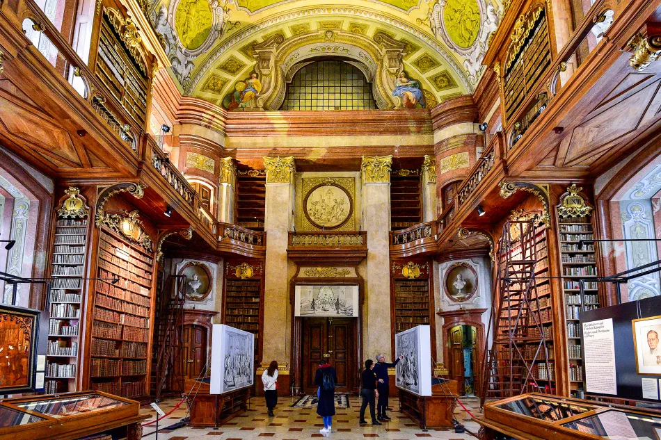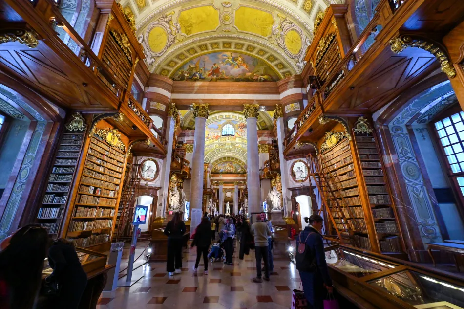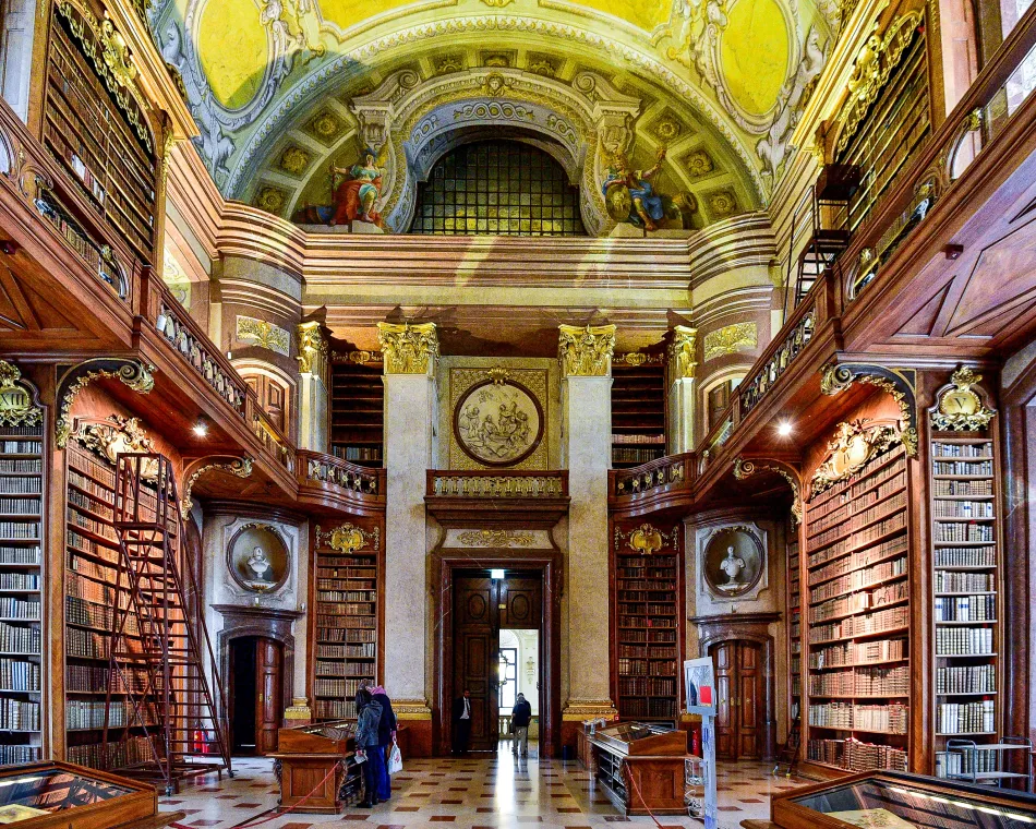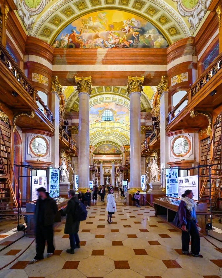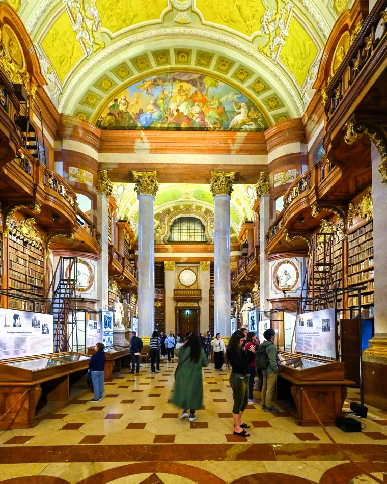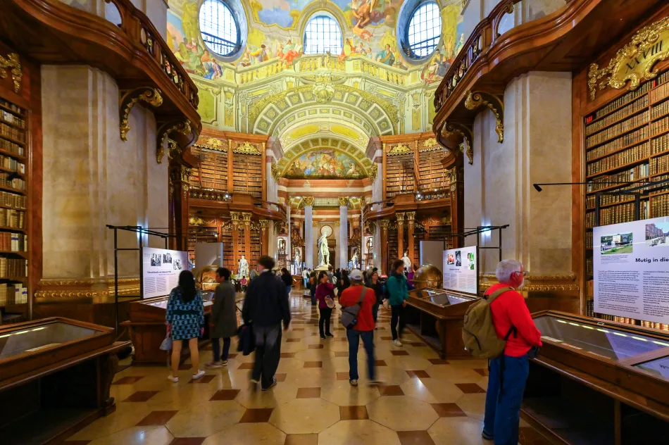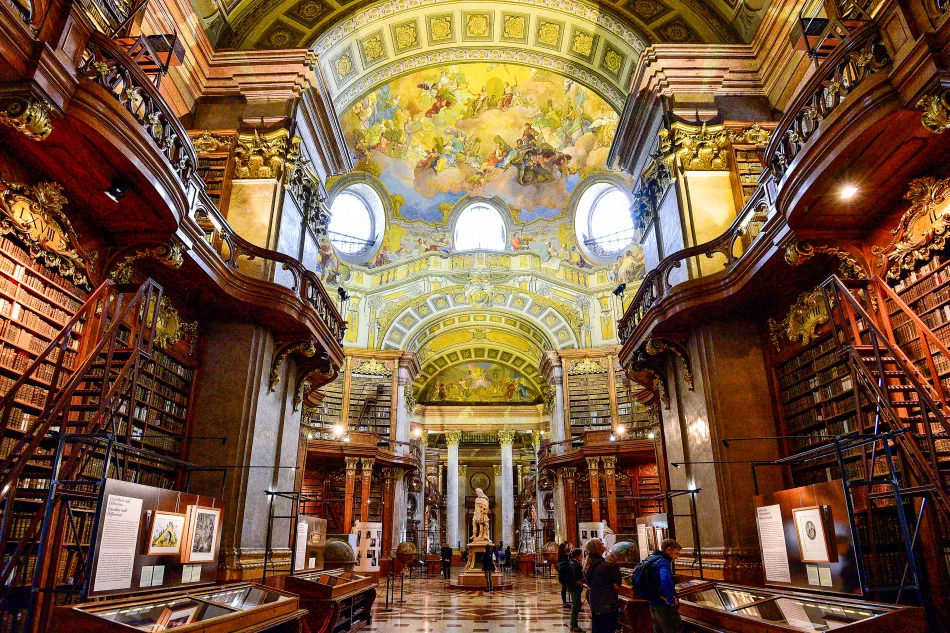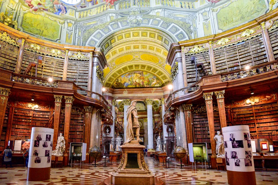 這個富麗堂皇的巴洛克樣式圖書館佔地廣大(長80公尺、高20公尺)是維也納一日遊必訪景點,收藏了超過20萬本的古籍,最古老的書超過千年歷史。