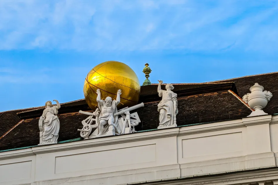 進到奧地利國家圖書館的國家大廳後,就是很單純的走走拍拍,停留時間可以抓45–60分鐘。這個圖書館以金碧輝煌的設計聞名,再搭配胡桃木書架以及自然而然的古色古香氣息,即使隨意走走、拍照,都很愜意。圖書館也會定期推出展覽,我曾經看過共濟會(Freemasonry)與奧地利近代重要事件書報展!