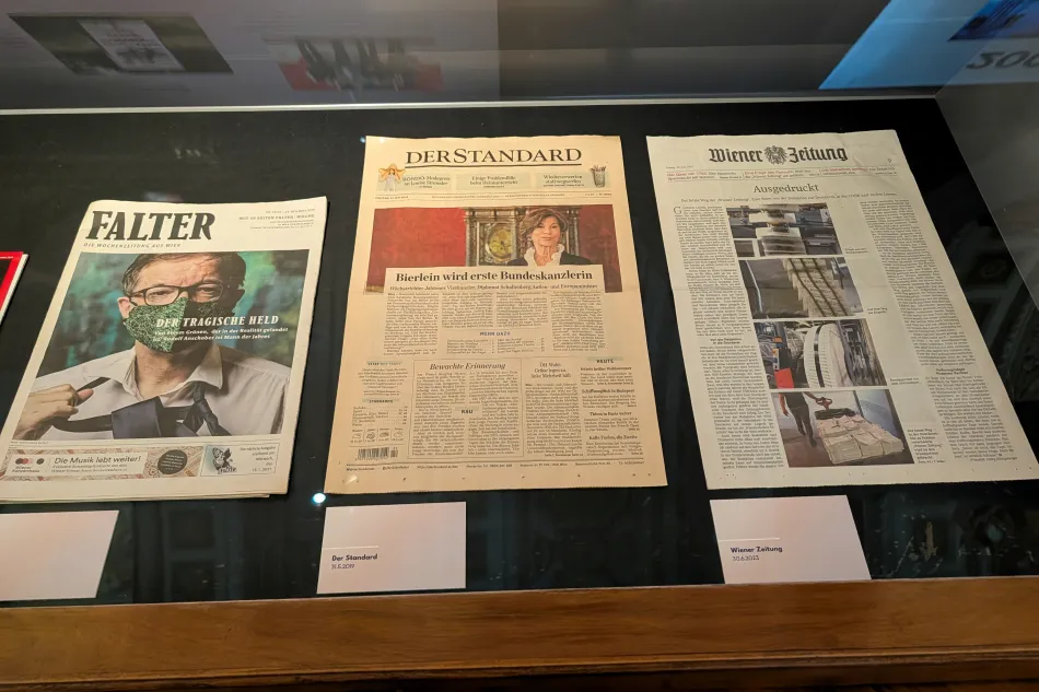 最近一次去則是展示與奧地利近代史重要事件相關的報章雜誌,例如 Covid-19 肆虐時的報紙、奧地利在鐵幕終結的幾年後投票加入歐盟,還有當時震驚當地的炸彈攻擊,不過…沒花太多時間閱讀。這些都算是特展性質(當然…不用另外購票),只要知道這邊會有展覽就夠了!