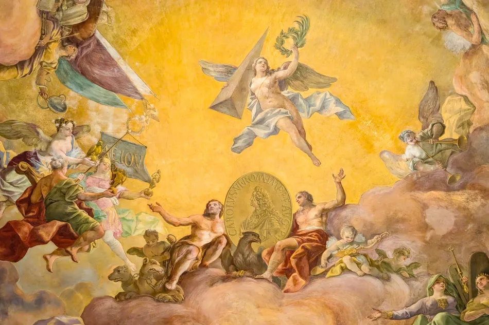 進入國家大廳之後可以先看看天花板上讓人眼花撩亂的繪畫,不過…沒有太多說明而且距離有點遠,通常是隨意拍拍照就到最核心的區域:皇帝查理六世(Charles VI)雕像的陳列處。