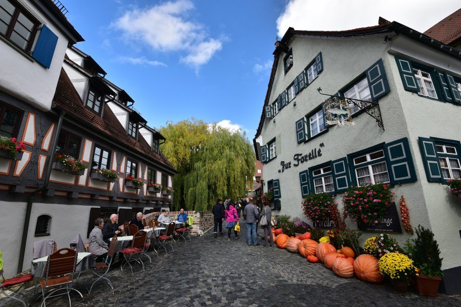 漁夫小區是River Blau匯入多瑙河的地方,以前是工匠群聚地,也是現在烏姆的必去景點。周遭有充滿古意的可愛建築,包含了外面擺放南瓜座椅供人拍照的餐廳。石橋、垂柳加上樸實的老建築,讓這邊成了烏姆遊客最絡繹不絕的地方。