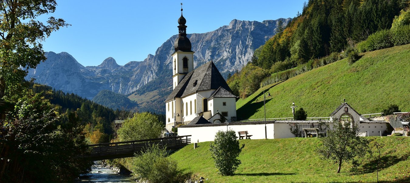 位於貝希特斯加登(Berchtesgaden)附近的藍紹(Ramsau,又譯為拉姆紹)是德國阿爾卑斯山區的小鎮,除了是附近山區的登山入口小鎮,藍紹教堂(Pfarrkirche St. Sebastian)搭配阿爾卑斯群山明信片般的夢幻景色也讓它成了旅人到貝希特斯加登跟國王湖旅行時的必去景點,藍紹跟國王湖中間就是隔著德國第二高峰:瓦茲曼山(Watzmann)。