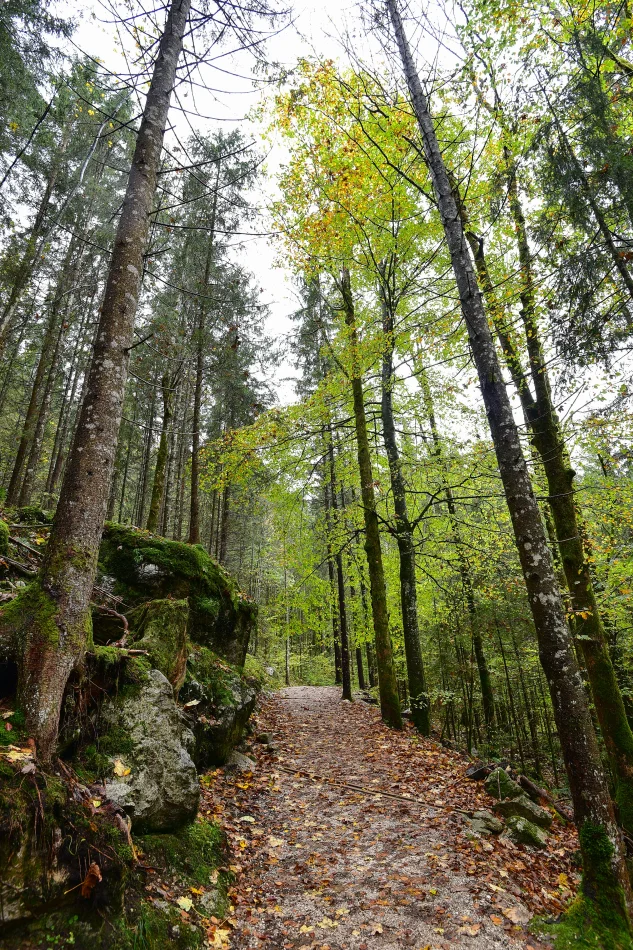 到藍紹旅遊,除了在風光明媚的教堂周遭拍照,也不能錯過經由魔法森林(Zauberwald)走到辛特湖(Hintersee)的健行路線,約一小時的行程。沿途會步行在蜿蜒曲折的羊腸小徑吸收滿滿的芬多精,見證亙古之前土石滑落造成的地質景觀,最後漫步於辛特湖邊,欣賞清澈的湖水與群山倒影,根本就是為健行愛好者設計的。